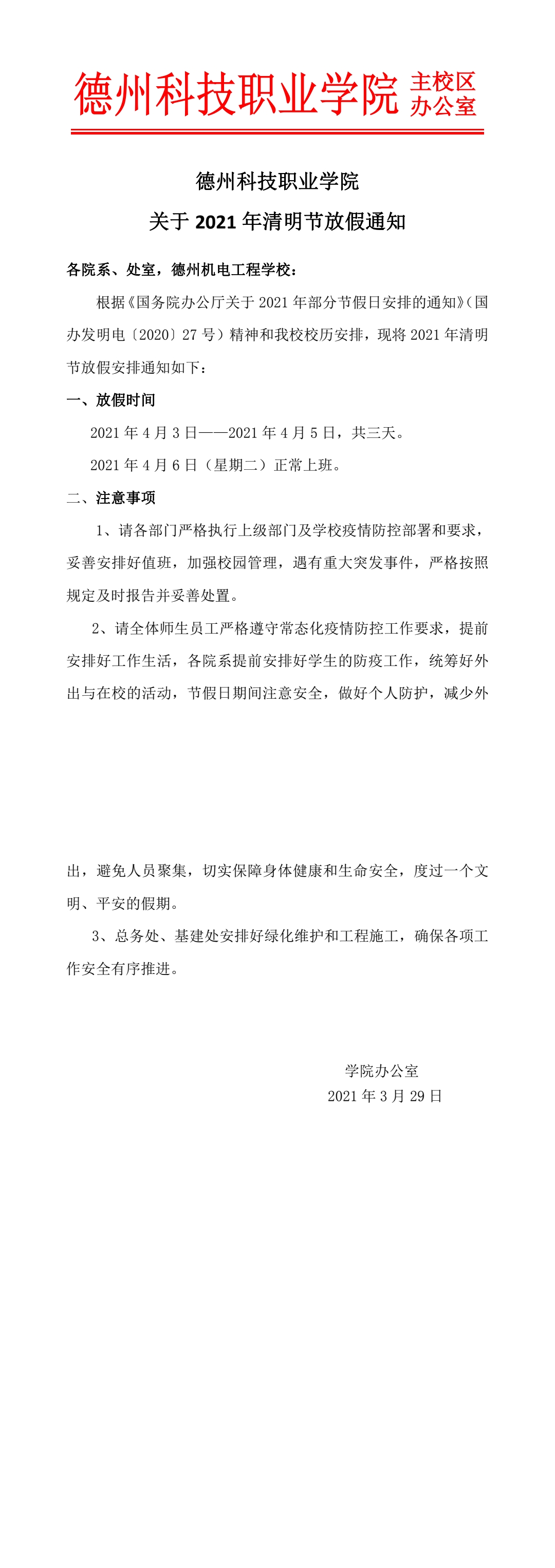 2021年清明节放假通知