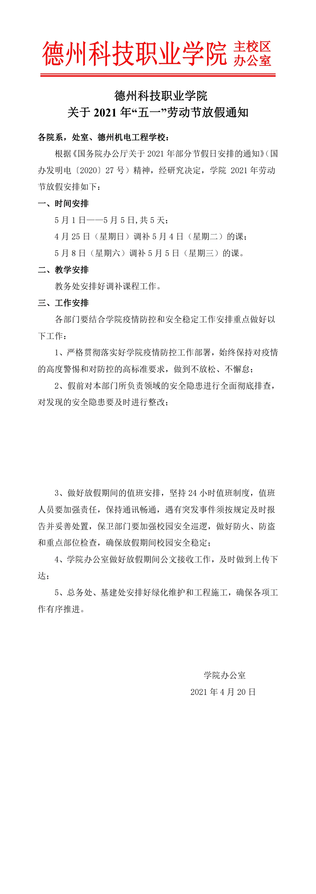 关于 2021 年“五一”劳动节放假通知
