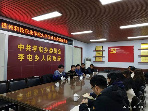 11月29日下午孙强强书记、孙彪处长、孙峰处长、王龙科长以及王婷导员到达李屯乡镇政府视察17级五名学生(杨玉茹、常永凤、杨梦涵、杨铭、高彦彦),并开展德州科技职业学院大学生社会实践座谈会。
