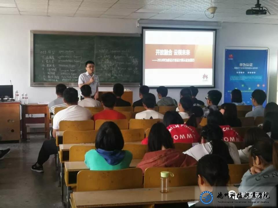 由华为技术有限公司主办,济南博赛网络技术有限公司承办的华为“耕云计划”--德州站, 5月23日在我院成功举办。活动当天邀请济南博赛网络技术有限公司李琼经理,启动2018年山东省网络技术大赛赛项,解读2018年山东省网络技术大赛四个命题,并对备赛环节给予指导,鼓励学生通过参加比赛,提升技术水平和实操技能。