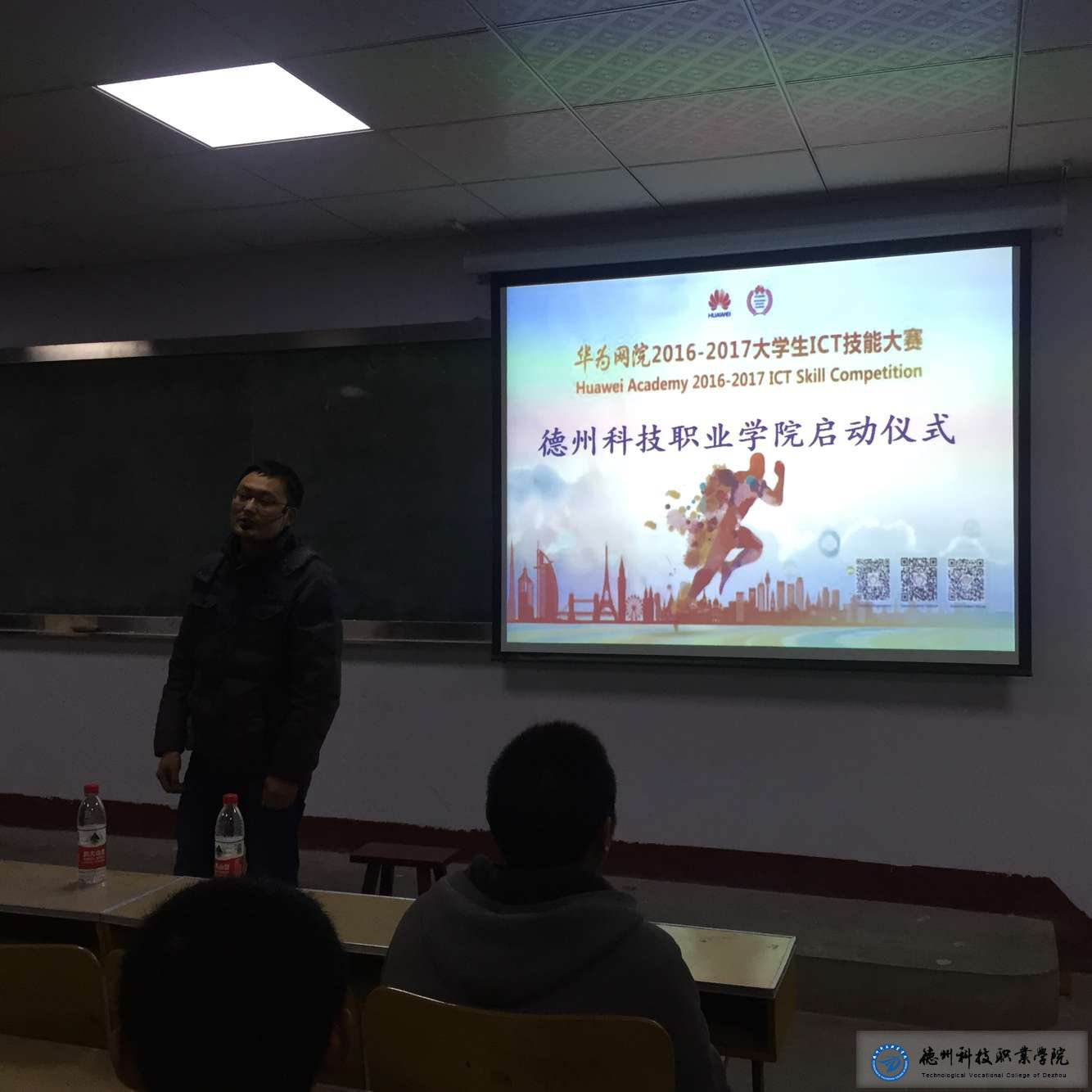 12月8日晚6点50分,我系在教学楼三楼合堂,举办2016年“华为网院杯”大学生ICT技能大赛启动仪式。出席活动的有济南博赛网络技术有限公司高级工程师冯劭玮老师,李琼老师,以及我校孙中诺老师、徐有华老师,信息系大一、大二部分学生代表。