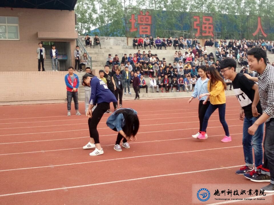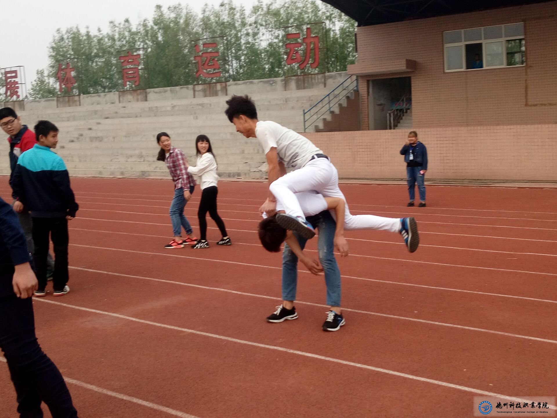 比赛随着哨声响起,双方队员迅速进入比赛状态,三人两组,跳马,背人的比赛共有30个代表队参加,活动要求参赛选手跑完规定的路程用时最短者将取得胜利。这就要求参赛者要默契配合,灵活巧妙的接力走完全程,极大的锻炼了同学们的集体协作能力。队员们激情高涨,争夺异常激烈。同时啦啦队员呐喊助威,赛场场气氛十分活跃。各班队员们表现出了强烈的取胜欲望,出色的配合。
