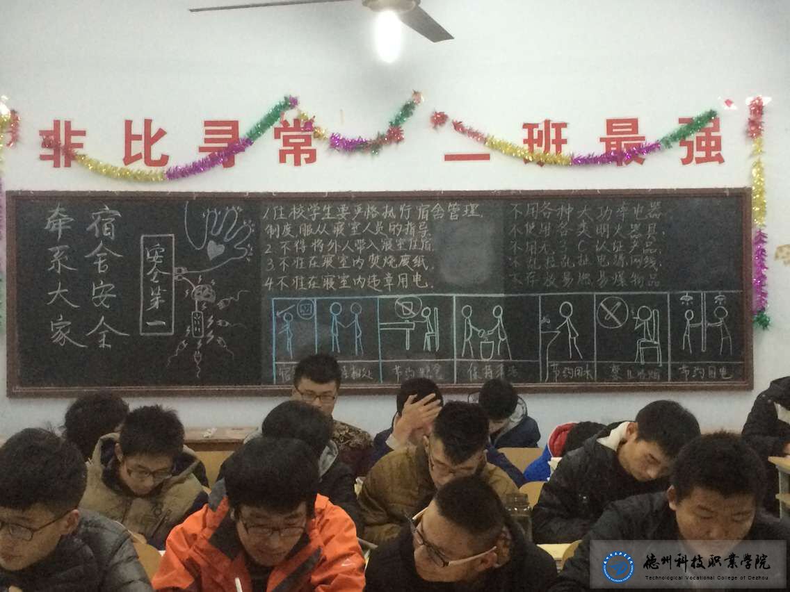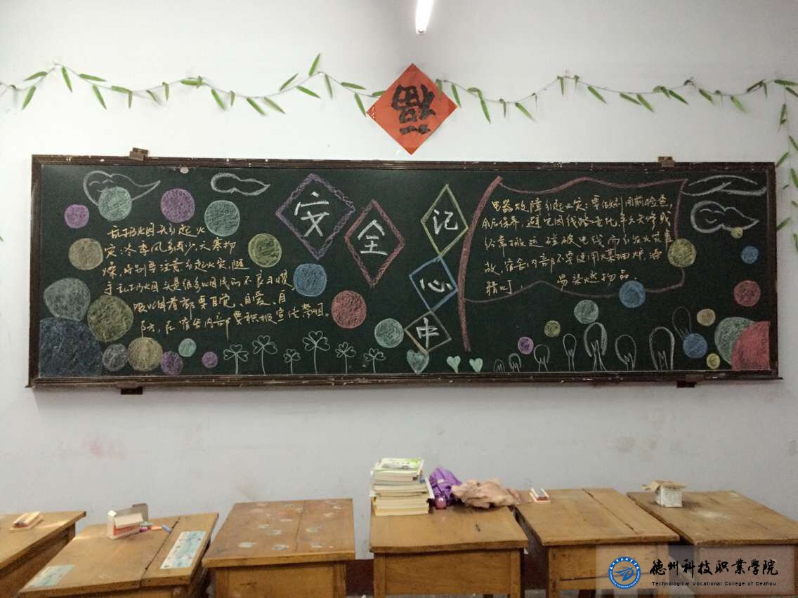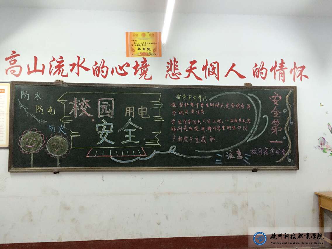 进入信息系各班教室,一幅幅设计新颖、主题鲜明的黑板报呈现在眼前。内容涉及宿舍防火,宿舍防盗,大功率电器使用,学生晚归的危险等问题。这些形象生动的文字和图片来源于学生生活,使学生产生了极大的震撼。