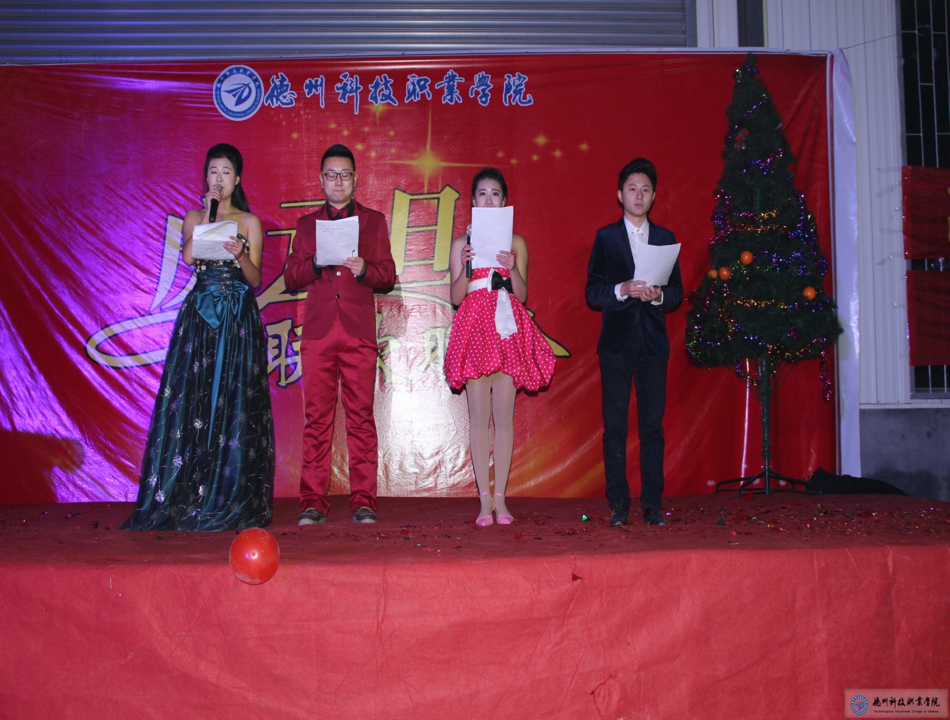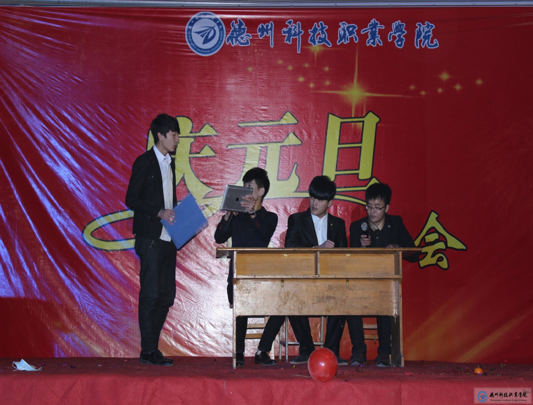 晚会首先在欢快的音乐声,动感的开场舞—《新年快乐》中拉开了序幕。信息系邵主任致辞并宣布晚会开始。晚会主持人三个系部公开推免,由范子璇,张璇,张海乐,姚雪芳四位同学主持。此次晚会形式多样,既有《钱都去哪了》、《爸爸讲故事》等精彩、富有深意的小品;还有《海阔天空》、《鱼》和藏族歌曲《哈益莫西》等风格各异的歌曲;更有让全体学生惊艳的街舞和刘群让同学精湛的B-Box;还有具有传统韵味的中华武术。期间还穿插抽奖等富有创意的小活动,整个会场气氛温馨而活跃。最后在三个系部学生会成员们的大合唱《相亲相爱》歌曲声中,元旦晚会圆满落幕。