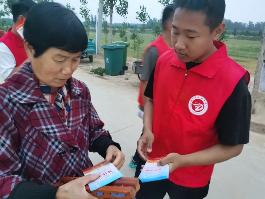 2023年5月26日,我校组织青年志愿者走进乡村,开展了“乡村青春行动”,向市民们宣传‘反邪教、宣民法、防溺水’的活动。