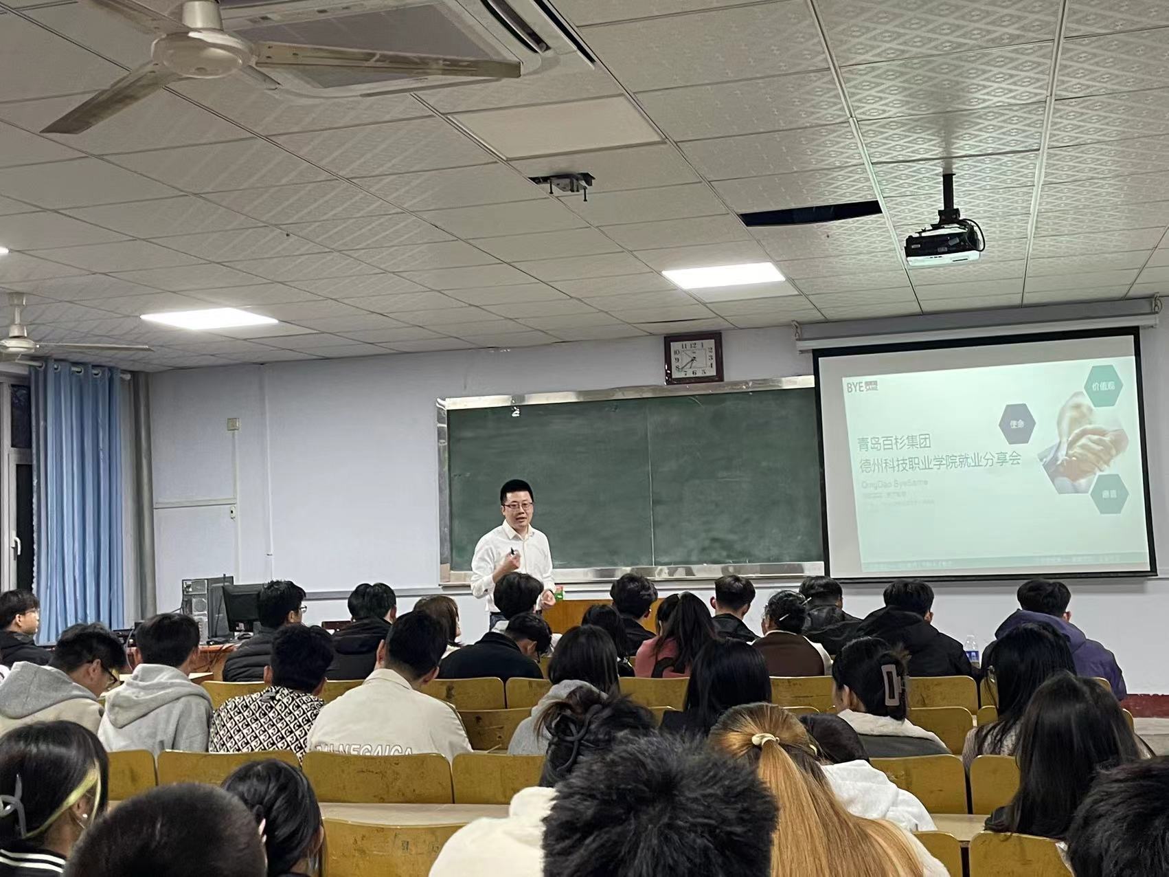 宣讲会上,青岛百杉集团宣讲人从他们的企业文化、企业规模、服务模式、岗位需求、发展前景、薪酬待遇等多个方面,向同学们进行了详细的讲解,并通过与学生互动的形式解答学生心中的疑问。并且邀请了我们德州科技职业学院信息工程系19信息4班的毕业生李康同学为我们指点迷津。