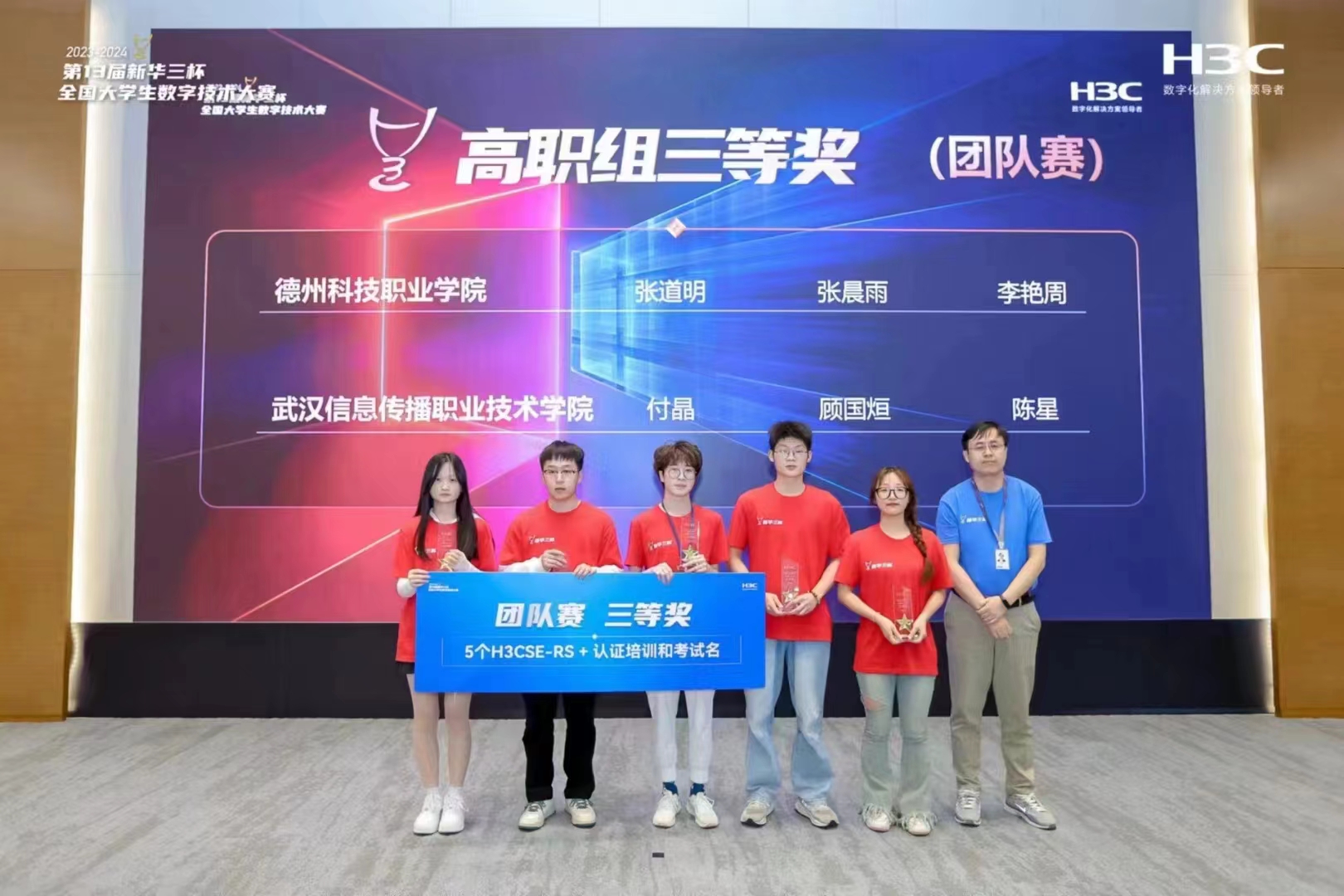 2024年第13届新华三杯全国大学生数字技术大赛在经过两天紧张而激烈的角逐后,终于圆满落下帷幕。此次大赛汇聚了来自全国各地的优秀学子,他们在赛场上展现了出色的技术实力和团队协作能力。其中来自德州科技职业学院信息工程系的三名参赛同学,张晨雨、张道明和李艳周,在比赛中充分展现了他们的专业素养和团队精神,经过刻苦奋斗和团结协作,最终全部获奖,为学院争得了荣誉。