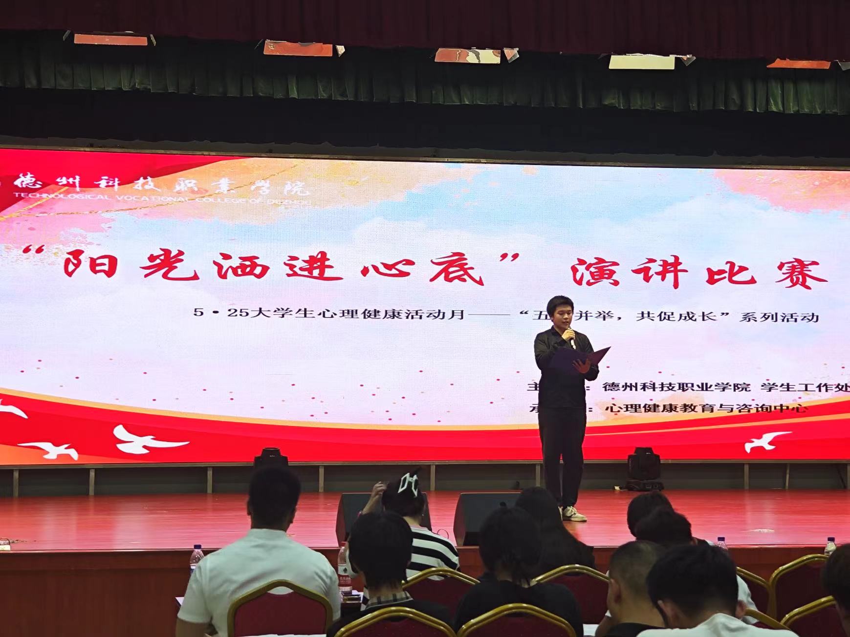近日,由德州科技职业学院学生工作处主办、心理健康教育和咨询中心承办的“阳光洒进心底”演讲比赛在禹城校区图书馆三楼大禹大讲堂隆重举行。此次活动作为5.25大学生心理健康活动月——“五育并举,共促成长”系列活动的一部分,旨在通过演讲的形式,让广大学生更加关注心理健康,促进全面发展。