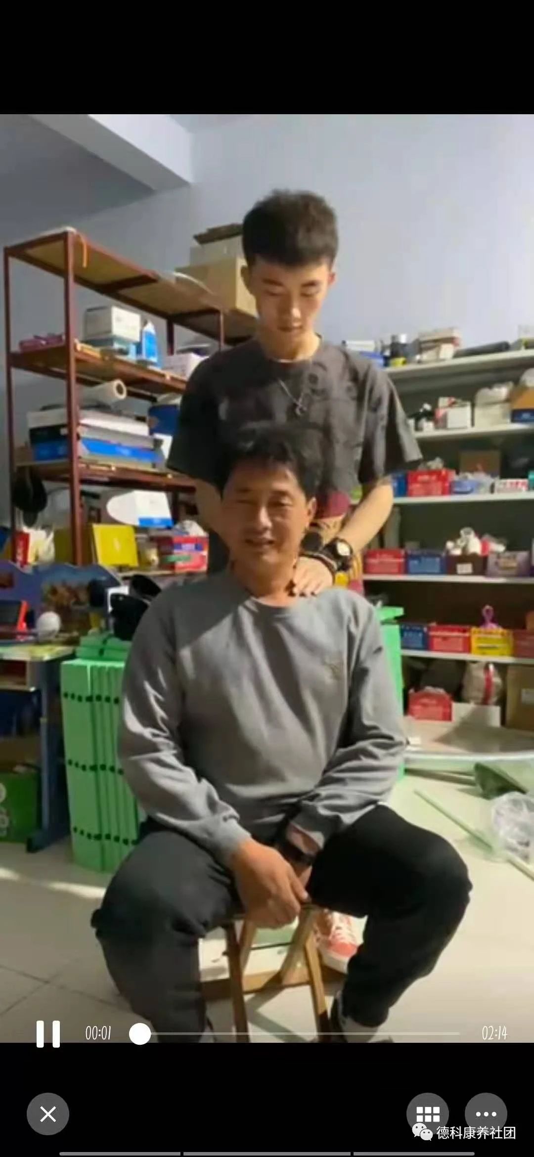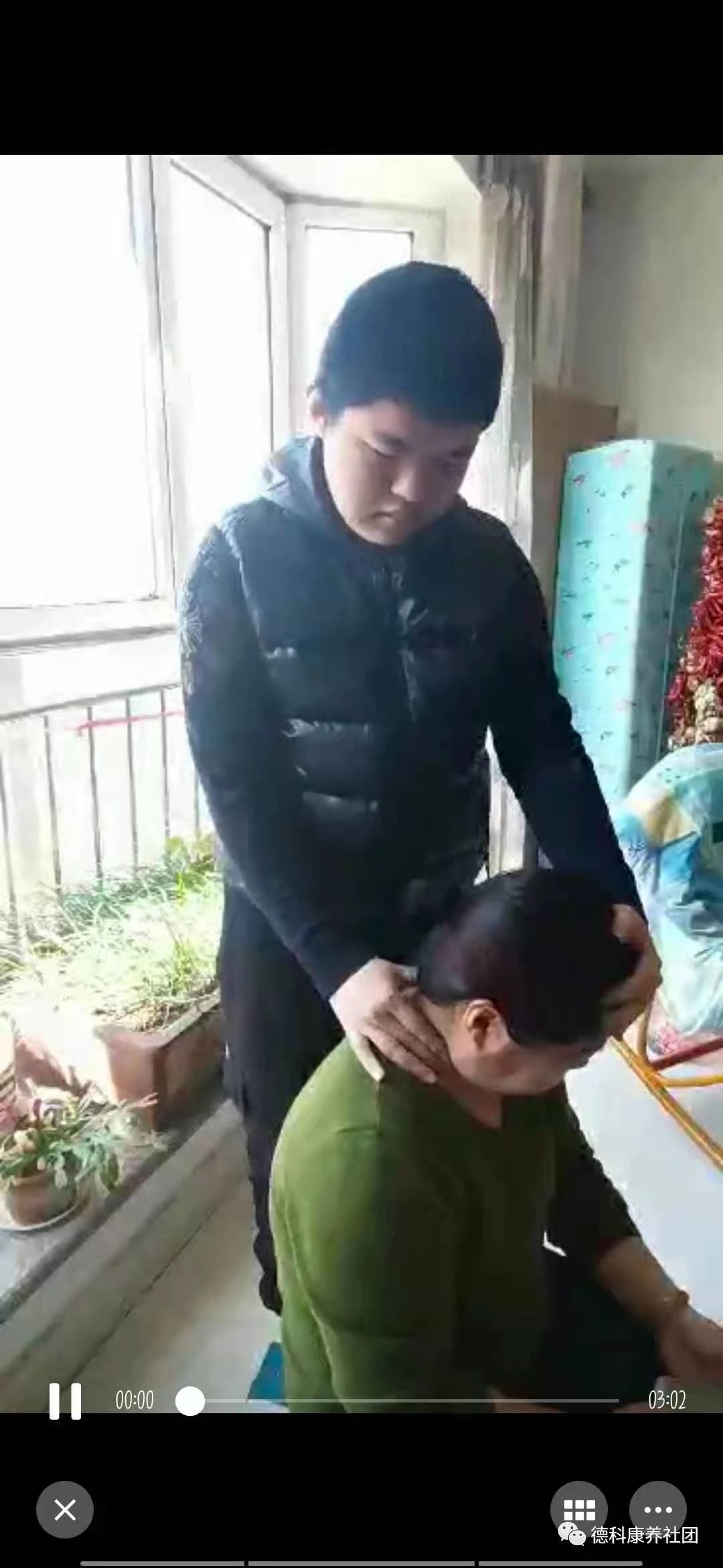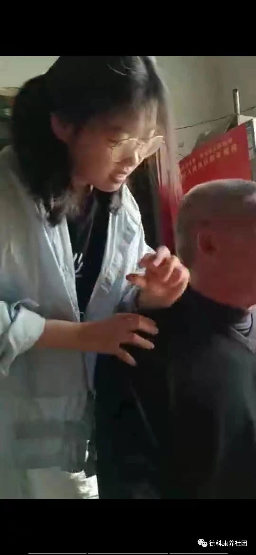 医学护理学院康养社团所有社员在五一假期利用社团所学知识为长辈、父母按摩放松身体。