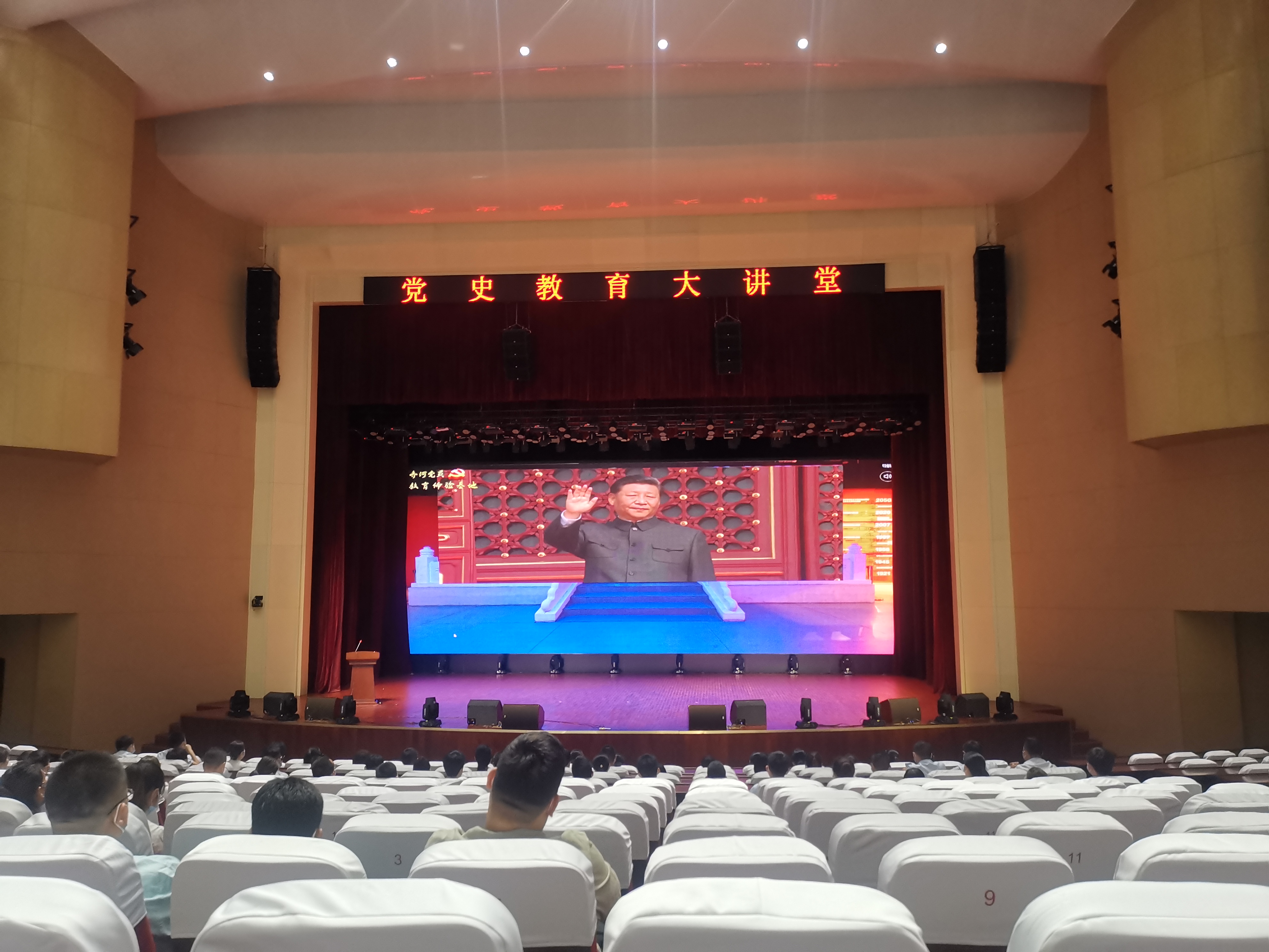 在党员教育体验基地的党史教育大讲堂,全体党员通过聆听讲解、观看视频,回顾了中国共产党的百年奋斗历程,重温了中国共产党为了争取民族独立和人民解放,顽强拼搏、浴血奋战,推翻“三座大山”压迫、成立中华人民共和国的革命历史、光荣历程,感受了党在改革开放、社会主义现代化建设新时期团结带领全国各族人民取得的重大发展成就,对百年党史有了更加全面的了解、产生了更加强烈的共鸣。随后,在讲解员的引领下,学院党员先后前往“不忘初心”“牢记使命”“责重山岳”“天降大任”“习近平新时代中国特色社会主义思想引领我们前进”等五个展厅逐一参观学习。