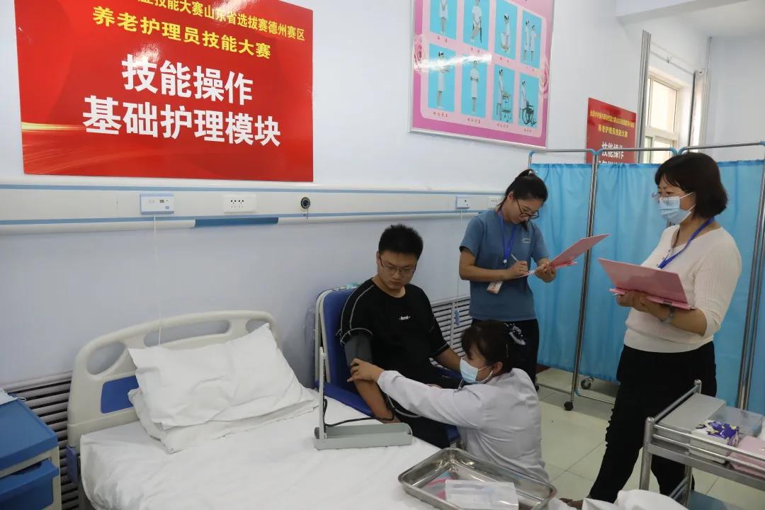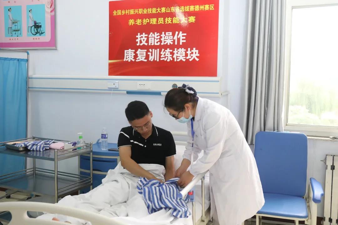 本次选拔赛于7月22日-25日举行,为德州市级一类技能大赛,共设汽车维修工、电工、养老护理员、育婴员、西式面点师、餐厅服务员、电子商务师7个比赛项目,每个项目设职工组和学生组。其中,养老护理员赛项由我校承办,共有来自8个县市区的24名选手参赛,前两名获奖选手将代表德州市参加山东省人社厅和山东广播电视台举办的全国乡村振兴职业技能大赛山东省选拔赛。
