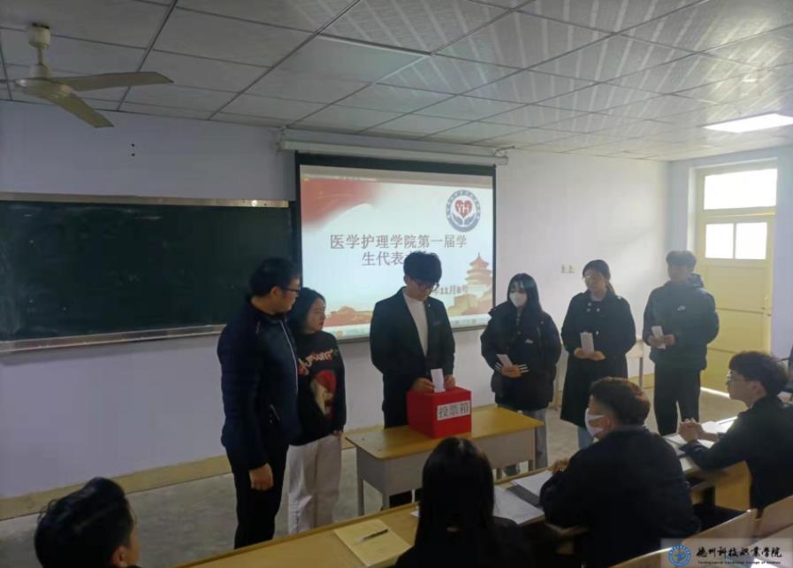 德州科技职业学院医学护理学院第一次学生代表大会在学院领导和亲切关怀下,经过全体代表的共同努力,顺利完成了大会预定的各项议程。相信通过各代表投票选出的学生会主席团成员能够不辱使命,积极完成学生会组织建设,带领学生会更上一层楼。
