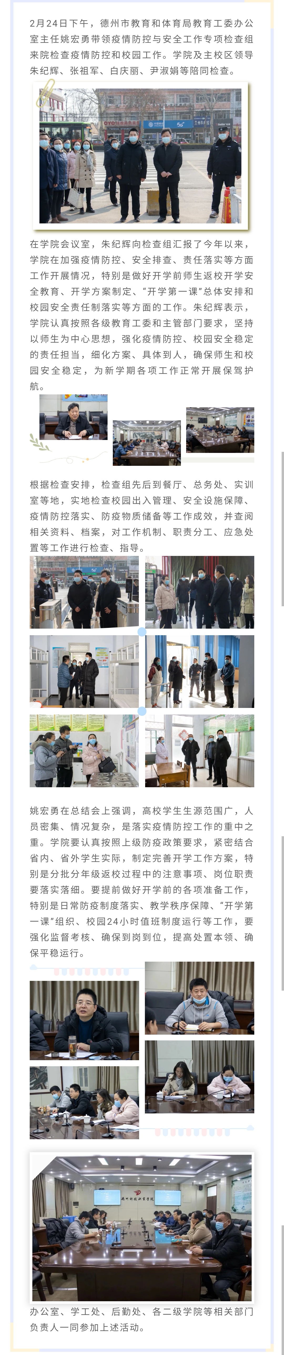 德州市教体局来我院开展疫情防控与安全工作专项检查