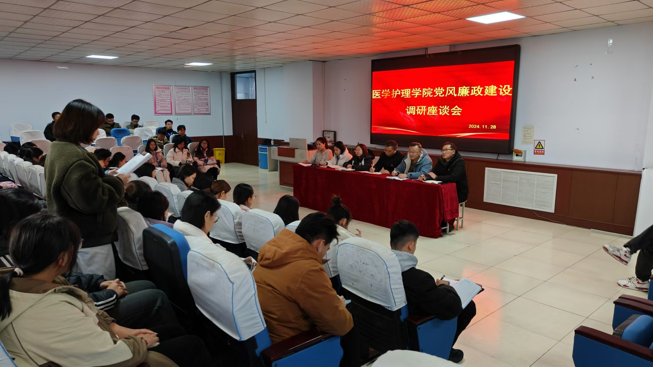 2024 年 11 月 28 日下午,医学护理学院召开党风廉政建设调研座谈会。参会人员有学院领导、教职工党员及各班学生代表。