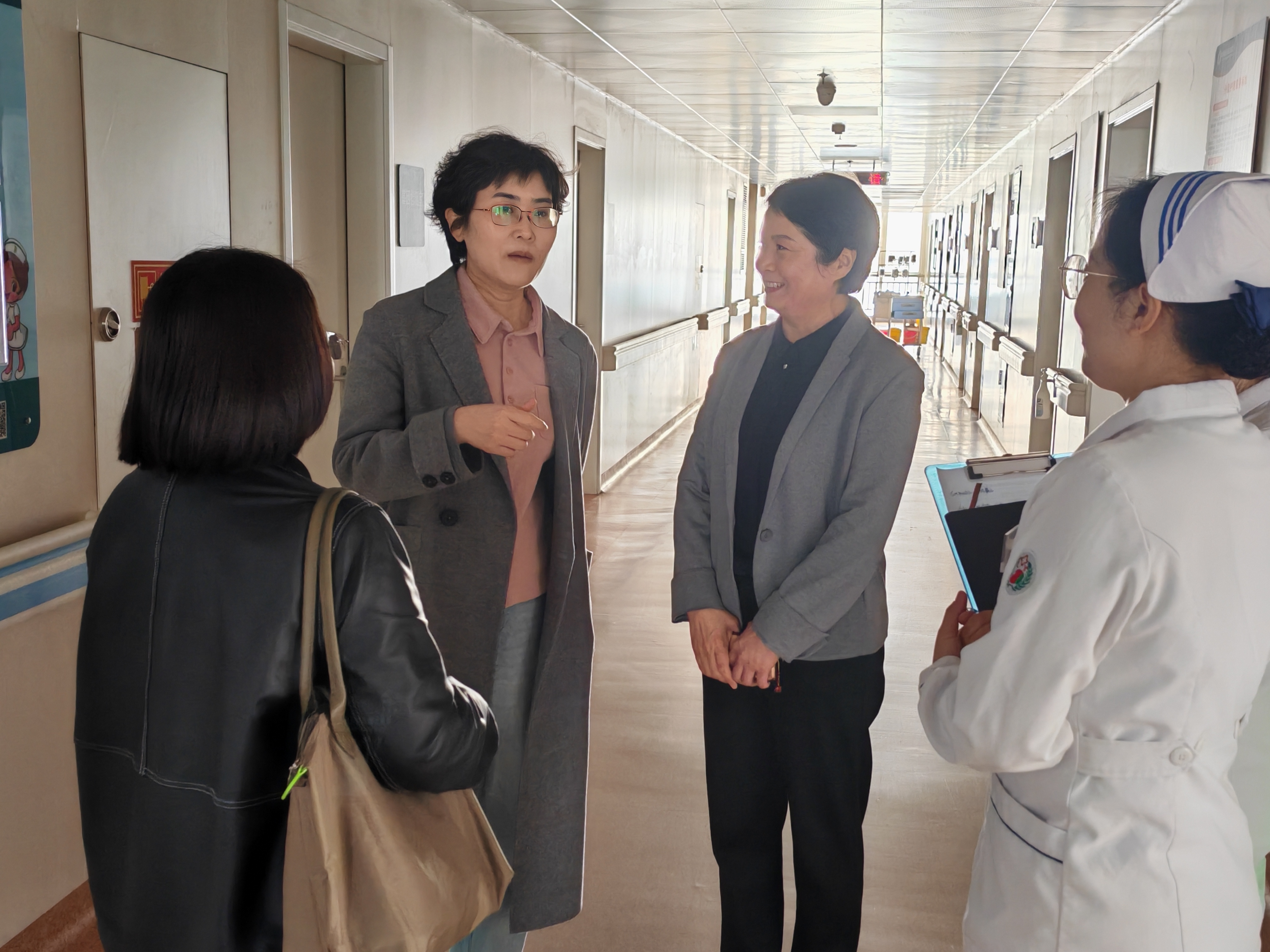 会后,在医院领导陪同下,学院领导实地参观了临床护理单元、月子中心等区域。在参观过程中,学院领导与一线护理人员亲切交谈,了解学生实习表现及临床实际需求,为后续调整教学重点提供依据。