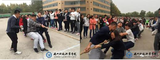 参赛人员本着"友谊第一,比赛第二"的原则,裁判员们的就位,第一组参赛的两支队伍进行着最后的准备和热身“第一组准备就绪,三!二!一!开始!” 这一瞬间足以让我们每一个人感动。听!他们齐声高喊着“一二”的口号,脚靠脚,人挨人,加油声,呐喊声,充斥在校园上空,久久回荡,离胜利只差一点点,只是一点点,只是几秒,却是穿越了历史的空间,然后突然爆发出来的,取得胜利!流下的拼搏的汗水虽只洒在田径场上,却弥漫着整个德科校园。 体育,可以锻炼人的意志;可以陶冶人的情操;可以培养人的团结协作及集体主义精神,而拔河比赛是一项集体性的体育活动,只有每一位参赛队员都把自己融入到集体中才能展现它的强大。 比赛如火如荼的进行,随着拉拉队的呐喊助威声,队员们更加努力的挥洒着汗水,在文化广场上掀起运动的风暴,将比赛推入赛点。 队员们的炙热气息感染了赛场,随着比赛慢慢进入尾声,老师们也加入进去,赛场上的呐喊更加热烈。通过这次拔河友谊赛,同学们意识到了团结的精神,协作的力量,最后我系范松梅主任、高圣迎主任宣布了比赛结果。
