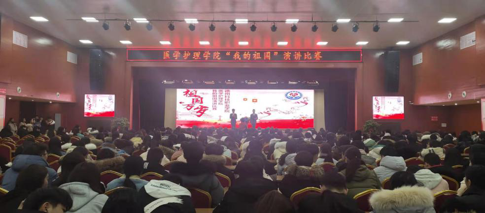 2019年12月13日晚,为提高学生综合素质,医学护理系在大禹大讲堂举办 "我和我的祖国"演讲比赛。