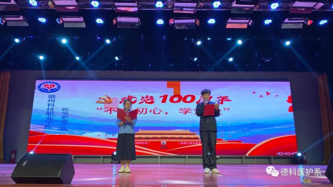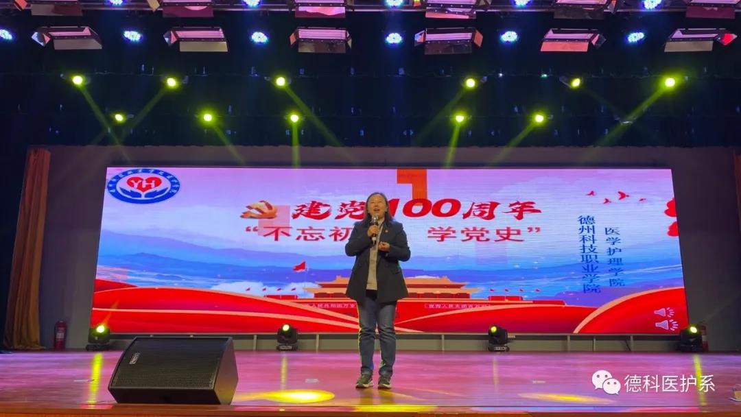 4月15日在德州科技职业学院党委的指导下,在共青团德州科技职业学院委员会的全力支持下,医学护理学院党支部组织举行"学党史,悟思想革命诗词咏诵会"。支部党员、入党积极分子,共青团员,和全系师生参加了本次活动。本次咏诵会以毛泽东等老一辈无变阶级革命家在党的波澜壮阔的革命历史中创作的诗词为载体,以诗词的创作背景为抓手,以革命历史为主线给师生同学上了一场生动、新颖的党史教育活动课。通过本次咏诵会激发了党员群众学党史的热情,增强了师生同学的爱国爱党热情。