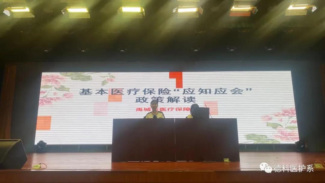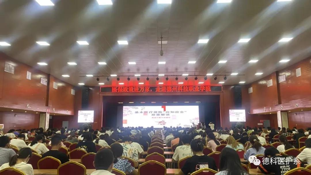 2021年六月十号下午医学护理学院的部分师生在大礼堂参加了由禹城市医疗保障局举办的基本医疗保险“应知应会”政策解读的活动。