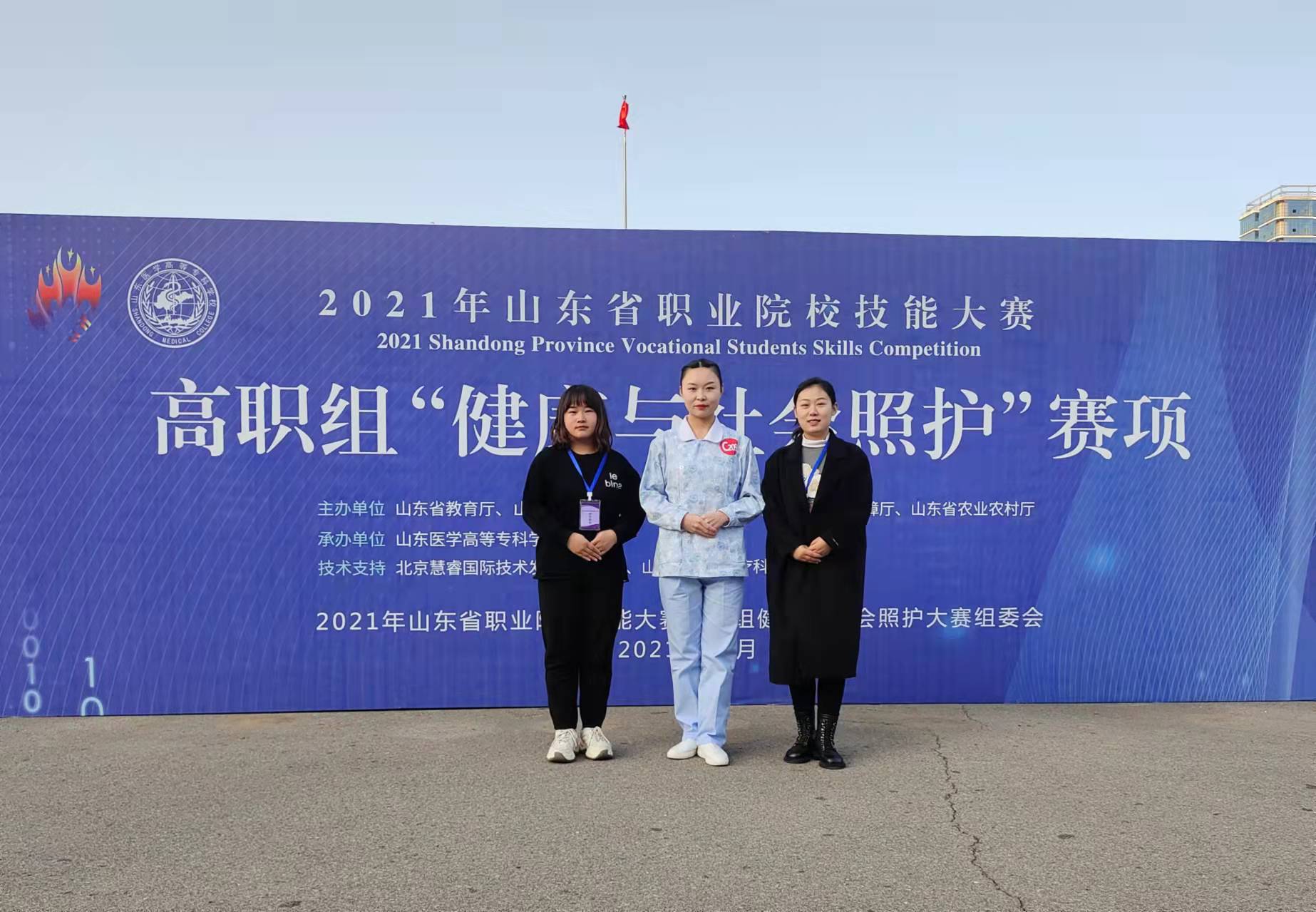 2021年12月10日,山东省职业院校技能大赛——高职组健康与社会照护赛项开赛式在山东医专临沂校区举行。我系20级护理1班学生刘秀萍同学参赛,刘丹丹老师和刘玉华老师一同前往。