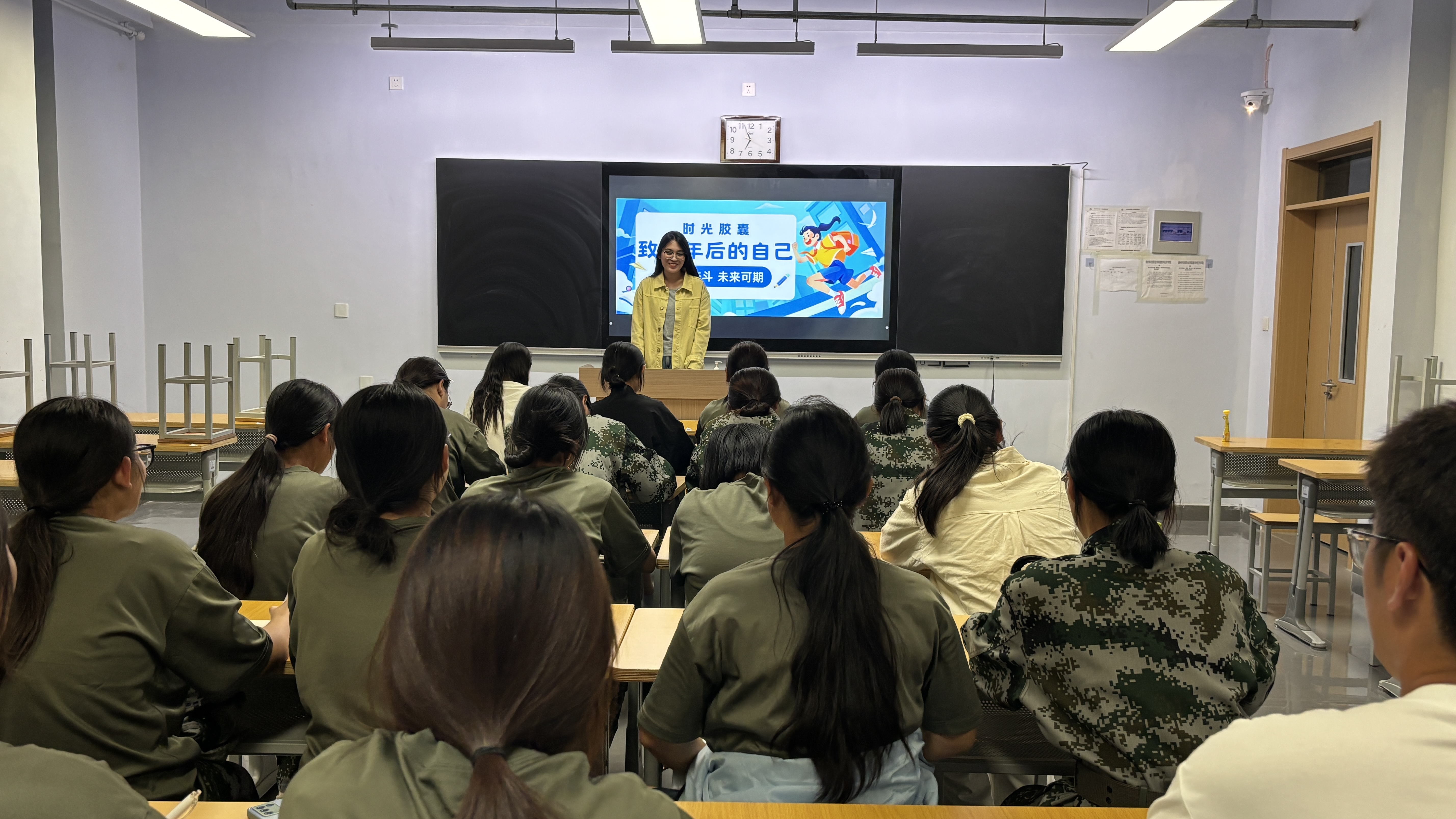 9月18日晚,夜色渐浓,医学护理学院2025级新生的军训生活暂歇,一场充满温情与期许的“写给三年后自己”时光胶囊活动,在明亮的教室内悄然启幕。